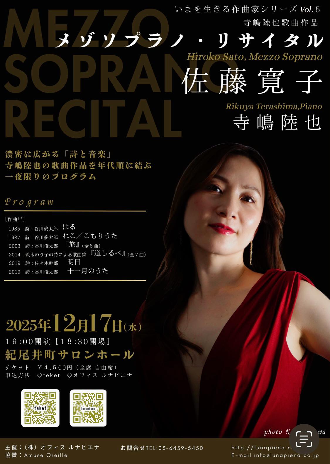 ◎佐藤寛子メゾソプラノ リサイタル〜いまを生きる作曲家シリーズvol.5〜